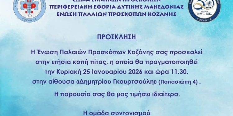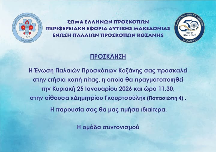 Ένωση Παλαιών Πρόσκοπων Κοζάνης-Πρόσκληση για κοπή πίτας