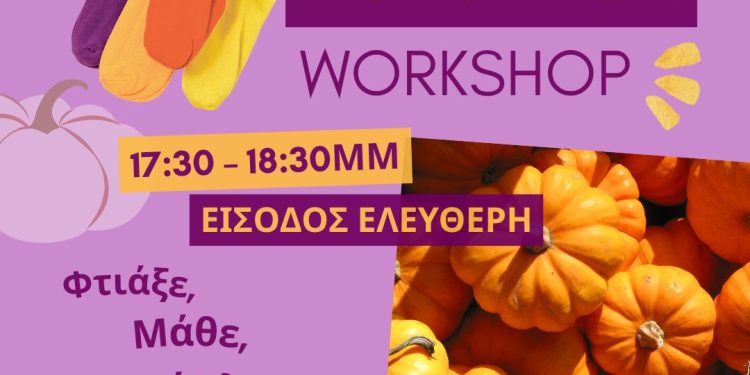 Στόχος του εργαστηρίου είναι να μάθουν τα παιδιά πώς μπορούμε να δίνουμε νέα ζωή σε παλιά ρούχα και υφάσματα, δημιουργώντας χειροποίητες διακοσμητικές κολοκύθες για το Halloween. Οι συμμετέχοντες θα έχουν την ευκαιρία να φέρουν τις παλιές τους κάλτσες (ιδανικά πορτοκαλί ή φθινοπωρινές αποχρώσεις) και να τις μεταμορφώσουν με φαντασία σε μοναδικές κολοκύθες.