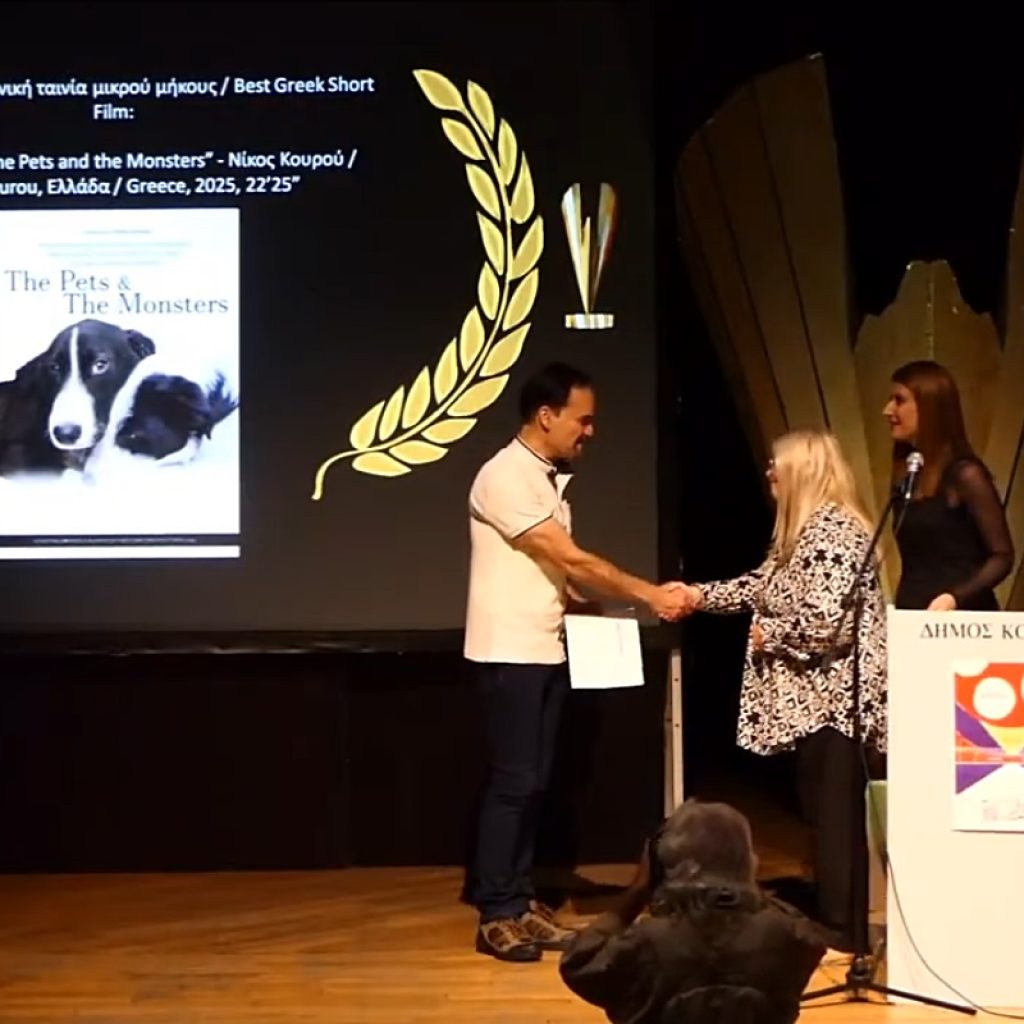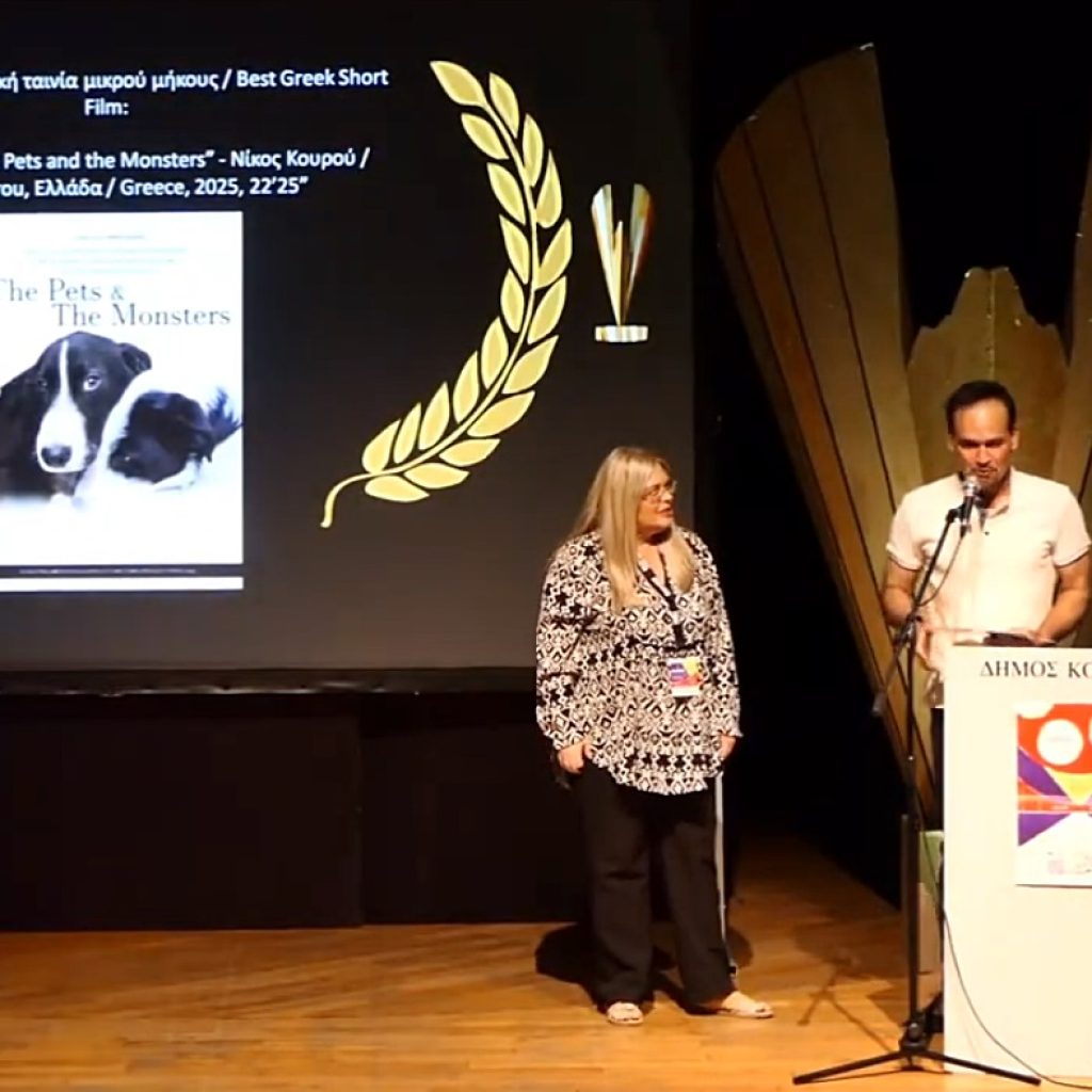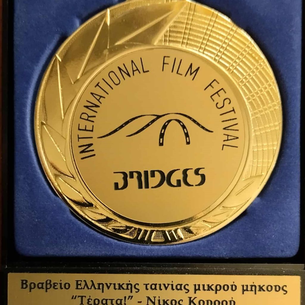 Κέρδισε τις εντυπώσεις και στο 16ο Διεθνές Κινηματογραφικό Φεστιβάλ ‘’Γέφυρες’’ η νέα ταινία του Νίκου Κουρού «Τέρατα» ή αλλιώς “The Pets and the Monsters”, όπως είναι ο ξενόγλωσσος τίτλος της. Η κριτική επιτροπή του εν λόγω φεστιβάλ της απένειμε το Βραβείο Καλύτερης Ελληνικής Ταινίας Μικρού Μήκους, το περασμένο Σάββατο 25 Οκτώβρη στην τελετή λήξης, όπου έλαβε χώρα στο Δημοτικό Θέατρο Κορίνθου. Ο σκηνοθέτης και πρωταγωνιστής της ταινίας, παρέλαβε συγκινημένος το βραβείο, τονίζοντας ότι ότι το βραβείο αυτό είναι κάτι ιδιαίτερο για εκείνον, καθώς η ταινία περιέχει πολλά βιωματικά στοιχεία.