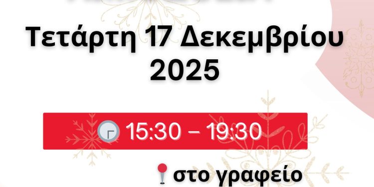 Τετάρτη 17 Δεκεμβρίου και ώρες 15:30 – 19:30 στο γραφείο του συλλόγου, Παύλου Χαρίση 23, θα πραγματοποιηθεί η τελευταία Εθελοντική Αιμοδοσία για το 2025