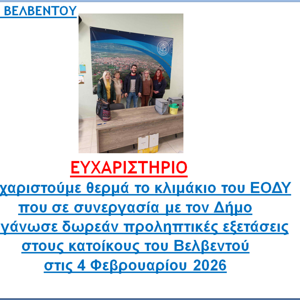Ευχαριστούμε θερμά το κλιμάκιο του ΕΟΔΥ