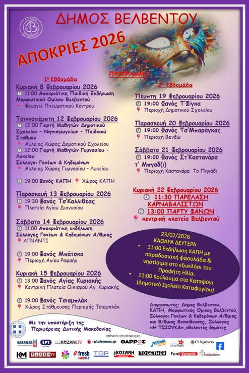 <!-- wp:image {"id":954535,"sizeSlug":"full","linkDestination":"none"} --> <figure class="wp-block-image size-full"><img src="https://kozanimedia.gr/wp-content/uploads/2026/02/ΑΦΙΣΑ-12ΗΜΕΡΟΥ-ΑΠΟΚΡΙΕΣ-ΒΕΛΒΕΝΤΟ.jpg" alt="" class="wp-image-954535"/></figure> <!-- /wp:image -->