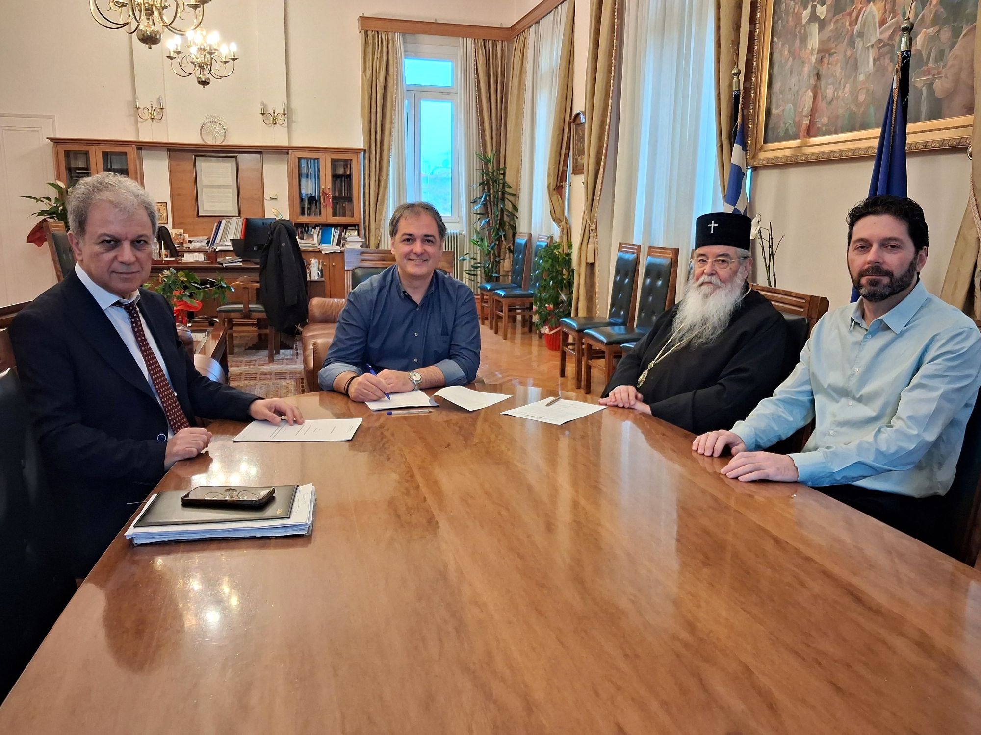 Η προγραμματική σύμβαση με τίτλο «ΚΑΤΑΣΚΕΥΗ ΔΙΚΤΥΟΥ ΑΠΟΧΕΤΕΥΣΗΣ ΑΚΑΘΑΡΤΩΝ ΓΙΑ ΤΗΝ ΕΞΥΠΗΡΕΤΗΣΗ ΤΟΥ ΤΙΑΛΕΙΟΥ ΕΚΚΛΗΣΙΑΣΤΙΚΟΥ ΓΗΡΟΚΟΜΕΙΟΥ ΚΟΖΑΝΗΣ», υπεγράφη το πρωί της Παρασκευής 23 Ιανουαρίου 2026 μεταξύ του Δημάρχου Κοζάνης Γιάννη Κοκκαλιάρη και του Σεβασμιωτάτου Μητροπολίτη Σερβίων & Κοζάνης κ.κ. Παύλου, παρουσία του Περιφερειάρχη Δυτικής Μακεδονίας Γιώργου Αμανατίδη και του Αντιδημάρχου Τεχνικών Έργων Κώστα Βόμβα.