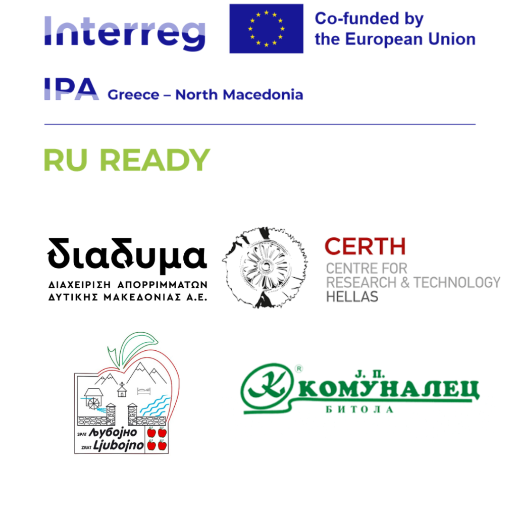 Η συνάντηση συγκέντρωσε όλους τους εταίρους του έργου: το Εθνικό Κέντρο Έρευνας & Τεχνολογικής Ανάπτυξης (ΕΚΕΤΑ) (ΕΛ), τη Δημοτική Επιχείρηση Κοινής Ωφέλειας KOMUNALEC Bitola (ΒΜ) και τη Μη Κυβερνητική Οργάνωση Για Την Ανάπτυξη του Εναλλακτικού Τουρισμού LJUBOJNO, Resen (ΒΜ), ενισχύοντας τη συνεργασία προς την επίτευξη των κοινών στόχων στα πλαίσια του έργου. Μέσω της εφαρμογής του συστήματος “Earn-As-You-Throw” (EAYT) στον Δήμο Βελβεντού, Ελλάδας, και της δημιουργίας του πρώτου εθνικού Κέντρου Επαναχρησιμοποίησης της Βόρειας Μακεδονίας στον Δήμο Μπίτολα, το έργο RU READY στοχεύει να προωθήσει την κυκλική οικονομία, να ενισχύσει τη διαχείριση αποβλήτων και να ενθαρρύνει την ενεργή συμμετοχή των πολιτών στην περιοχή συνεργασίας. Συντονισμένες δράσεις διαχείρισης, επικοινωνίας και αξιολόγησης ενισχύουν περαιτέρω την υιοθέτηση βιώσιμων πρακτικών, συμβάλλοντας στην προστασία του περιβάλλοντος, την κοινωνικοοικονομική ανάπτυξη και τη διασυνοριακή συνεργασία.