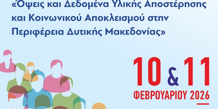 Η Αντιπεριφέρεια Δημόσιας Υγείας και Κοινωνικής Μέριμνας της Περιφέρειας Δυτικής Μακεδονίας διοργανώνει Διημερίδα Δικτύωσης & Συνεργασίας με θέμα «Όψεις και Δεδομένα Υλικής Αποστέρησης και Κοινωνικού Αποκλεισμού στην Περιφέρεια Δυτικής Μακεδονίας. Η υποστήριξη πολιτικών αντιμετώπισης των πολλαπλών αποκλεισμών», στις 10 & 11 Φεβρουαρίου 2026 στην Κοζάνη.
