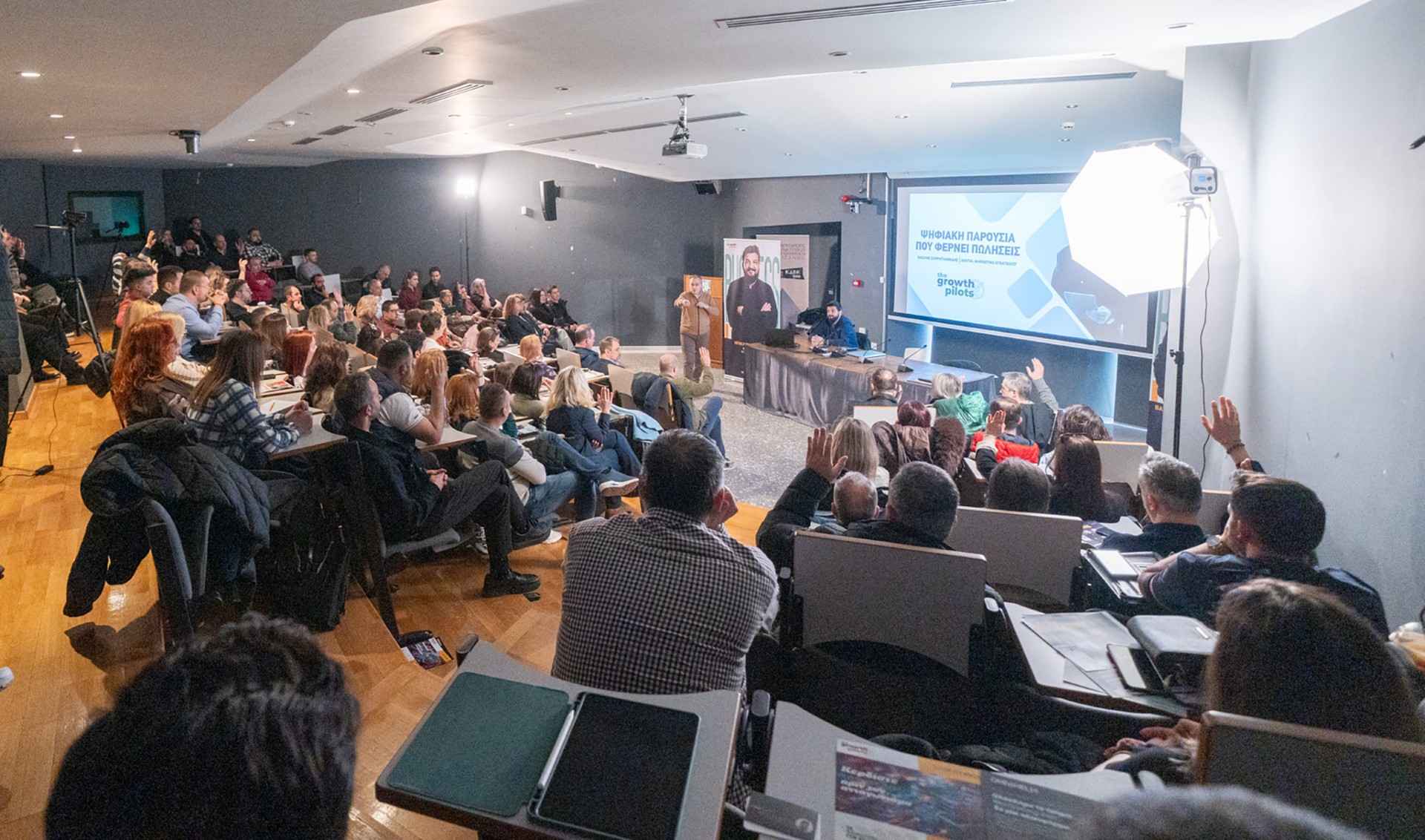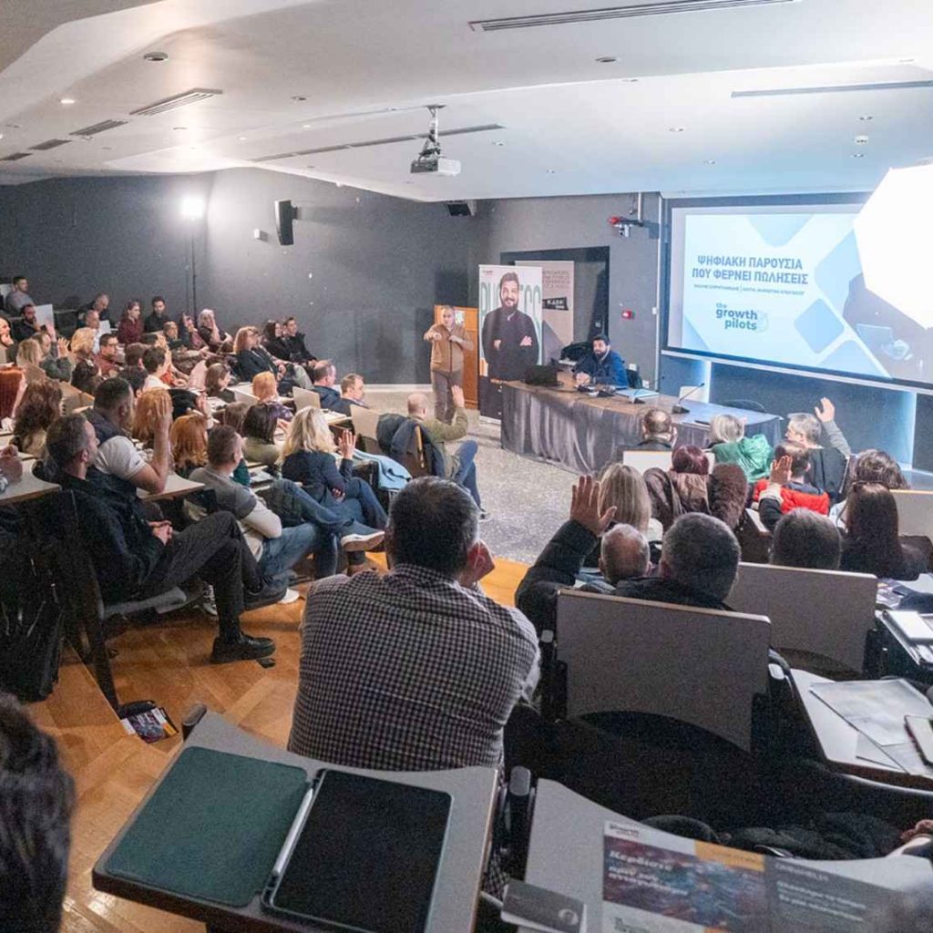 Κεντρικοί εισηγητές της ημερίδας ήταν οι ιδρυτές της ομάδας Growth Pilots, Βασίλης Σαρρηγιαννίδης (Digital Marketing Strategist) και Ηρακλής Ασλανίδης (Digital Marketing & Growth Consultant), οι οποίοι ανέλυσαν με πρακτικά παραδείγματα πώς η Τεχνητή Νοημοσύνη (AI) και η σωστή διαχείριση των κοινωνικών δικτύων μπορούν να μεταμορφώσουν μια επιχείρηση.