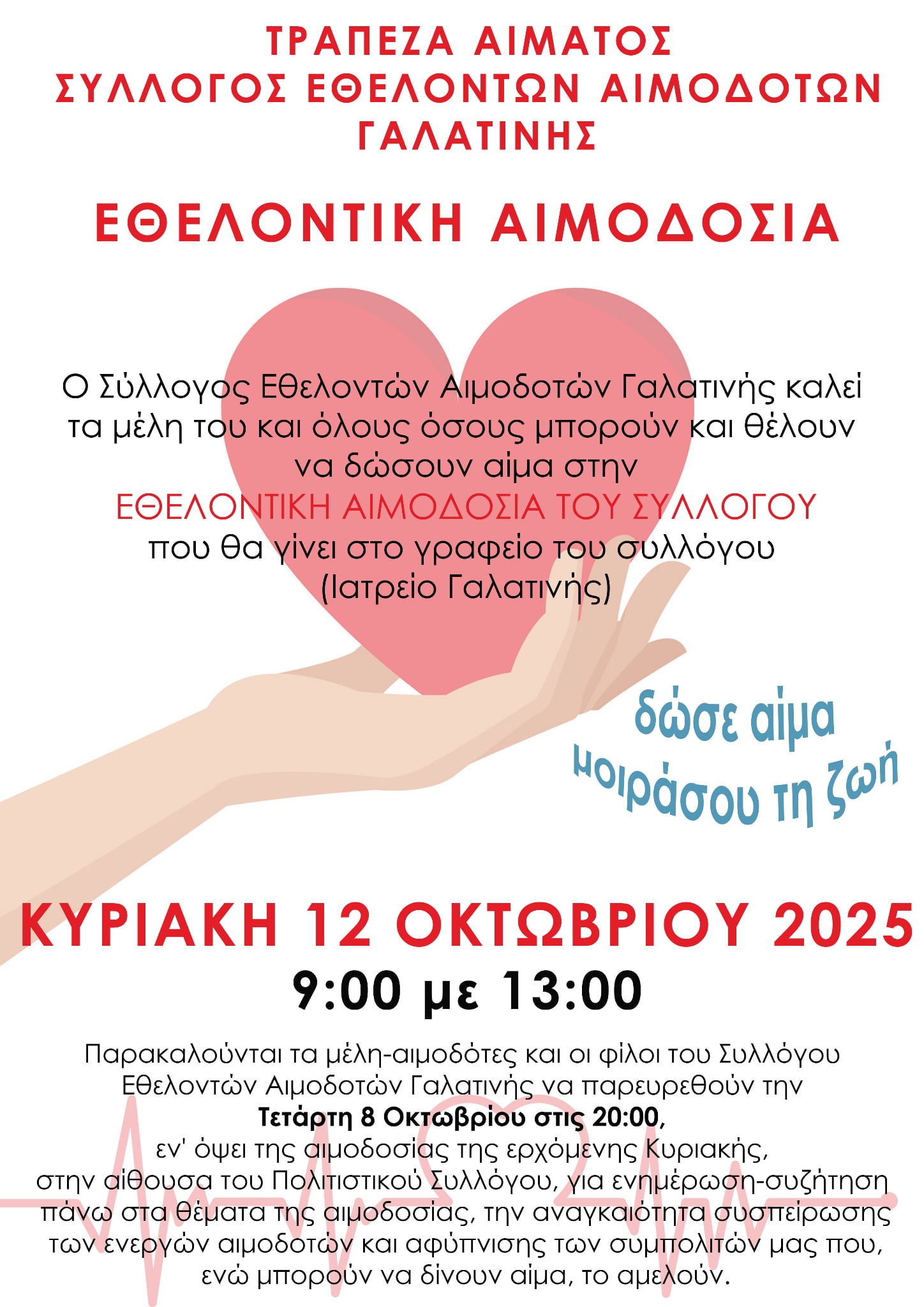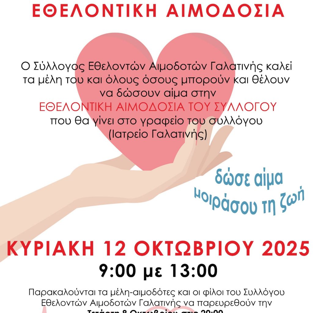Εθελοντική αιμοδοσία στη Γαλατινή