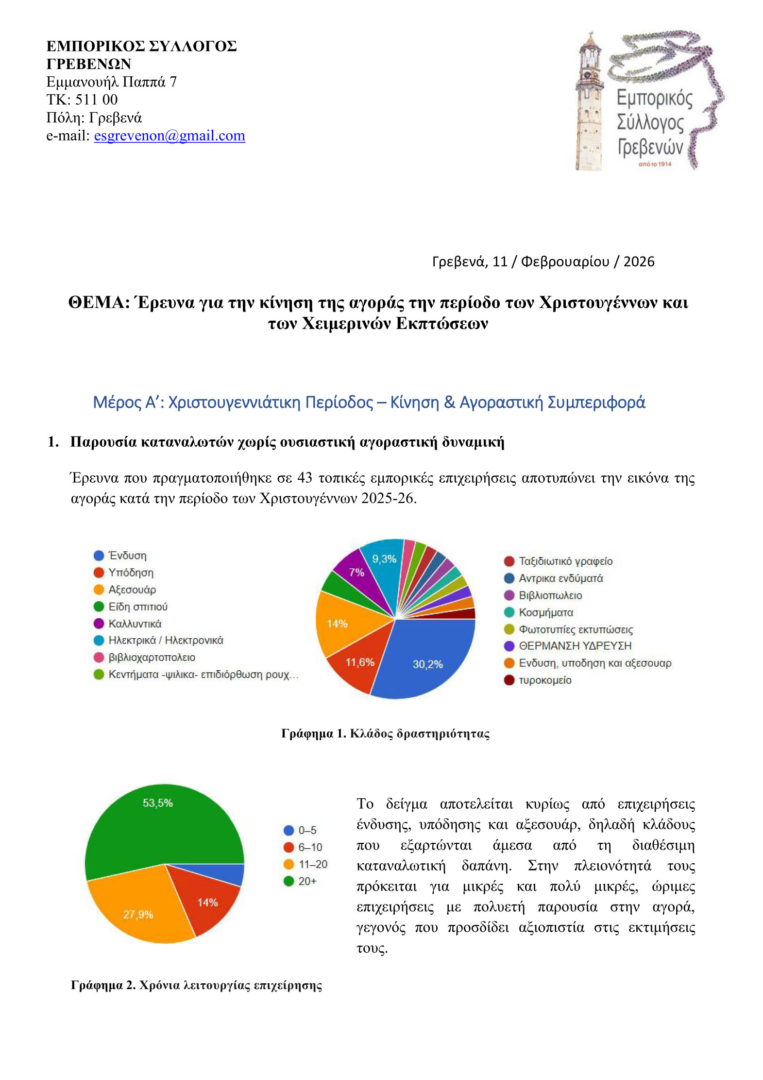 Εμπορικός Σύλλογος Γρεβενών: Έρευνα για την κίνηση της αγοράς την περίοδο των Χριστουγέννων 2025-26 και των Χειμερινών Εκπτώσεων 2026