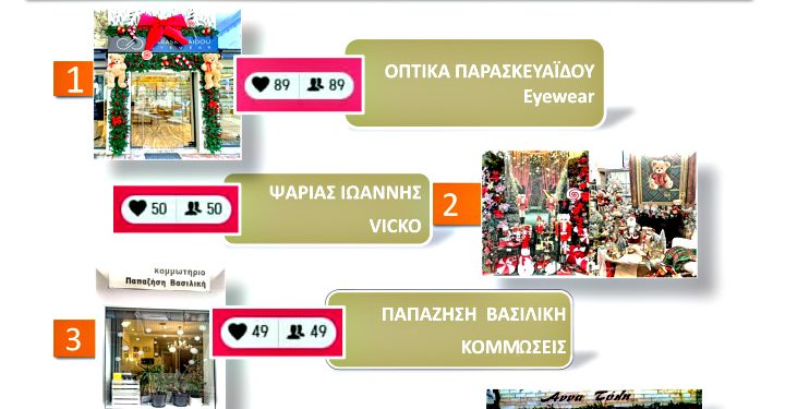 Το Διοικητικό Συμβούλιο του Εμπορικού Συλλόγου Γρεβενών ευχαριστεί θερμά τους 510 συμπολίτες μας, οι οποίοι με τη συμμετοχή και την ψήφο τους μέσω της διαδικτυακής πλατφόρμας pollunit.com στήριξαν έμπρακτα το εγχείρημα και συνέβαλαν στην ανάδειξη της καλύτερης συμμετοχής. Παράλληλα, εκφράζουμε τις ευχαριστίες μας σε όλους τους επαγγελματίες που έλαβαν μέρος στον διαγωνισμό, συμβάλλοντας σε μια δράση που έχει ως βασικό στόχο την ενίσχυση της τοπικής αγοράς και τη δημιουργία εορταστικού κλίματος στην πόλη μας.