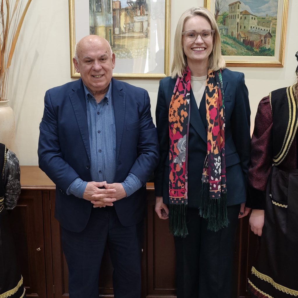 Την Πρέσβειρα της Ιρλανδίας στην Ελλάδα, κα Ciara O’Floinn, υποδέχθηκε σήμερα, Παρασκευή 20 Μαρτίου 2026, στο Δημαρχιακό Μέγαρο, ο Δήμαρχος Γρεβενών κ. Κυριάκος Τασταρίδης, στο πλαίσιο της προγραμματισμένης επίσκεψής της στην πόλη, με αφορμή τη διοργάνωση του St. Patrick’s Day Festival, το οποίο πραγματοποιείται για 11η συνεχόμενη χρονιά στα Γρεβενά, αποτελώντας πλέον έναν καταξιωμένο θεσμό που ενισχύει τη διεθνή εξωστρέφεια της περιοχής.