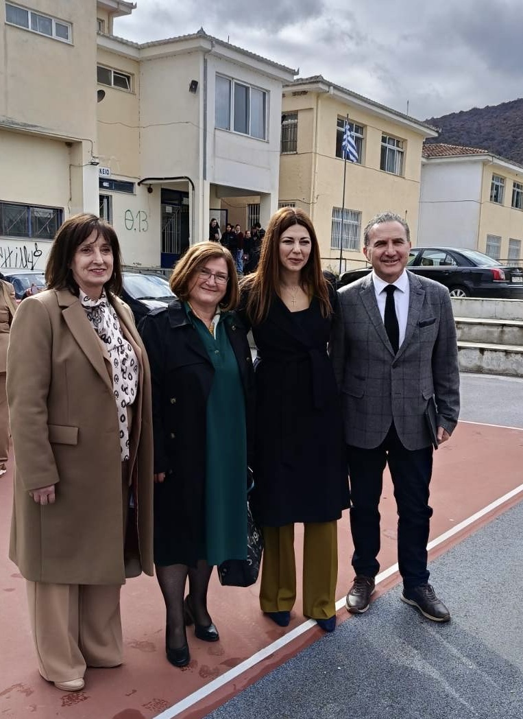 Ακολούθησε η επίσκεψη στο ΕΠΑΛ Καστοριάς, όπου απευθυνόμενη σε εκπαιδευτικούς και μαθητές/μαθήτριες εξήγγειλε την εισαγωγή του μαθήματος της Οδικής Ασφάλειας και τη λειτουργία πάρκου οδικής ασφάλειας εντός του χώρου του σχολείου.
