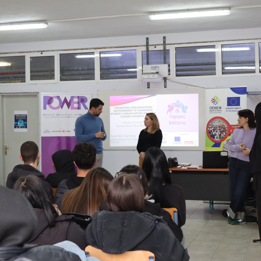 Ο Όμιλος Ενεργών Νέων Φλώρινας (ΟΕΝΕΦ) – Europe Direct Δυτικής Μακεδονίας επισκέφθηκε, στις 27 Μαρτίου 2026, το 2ο ΕΠΑΛ Κοζάνης – Σχολείο Πρέσβης του Ευρωπαϊκού Κοινοβουλίου. Η επίσκεψη πραγματοποιήθηκε στο πλαίσιο του προγράμματος POWER «Γέφυρες Ισότητας» και εμβάθυνε στα έμφυλα στερεότυπα και την προώθηση της ισότητας των φύλων.