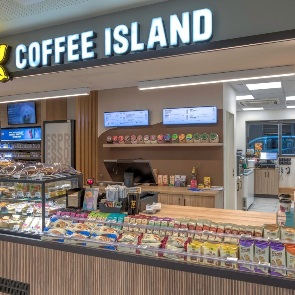 o Coffee Island: επιλογές dine-in ή drive-through για καφέ και σνακ υψηλής ποιότητας.