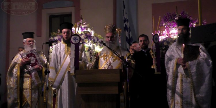 Ο Επίσκοπος και οι Ιερείς μετά την περιφορά των Επιταφίων μοίρασαν λουλούδια στους πιστούς ως φυλαχτό , ένα έθιμο που κρατάει αιώνες ανά την Ελλάδα.