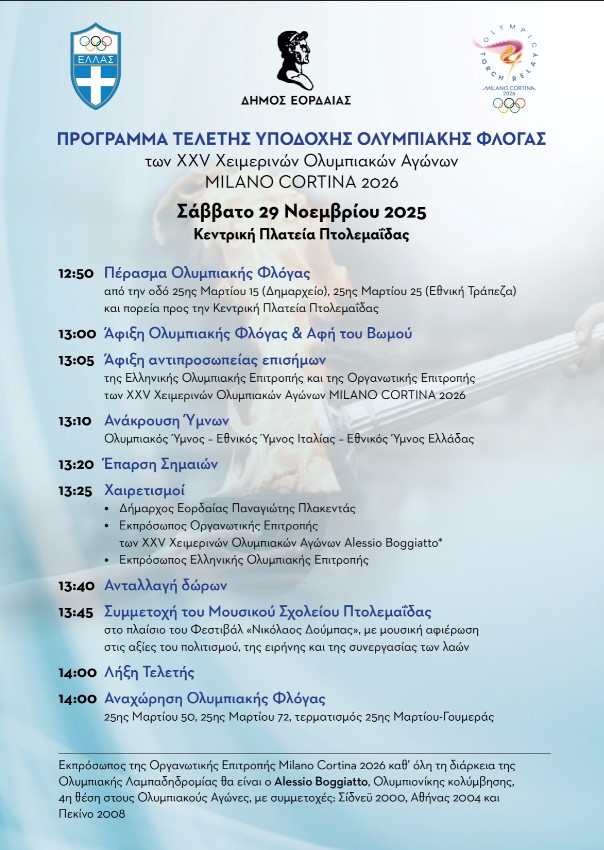 Η Πτολεμαΐδα υποδέχεται την Ολυμπιακή Φλόγα των Χειμερινών Αγώνων MILANOCORTINA 2026