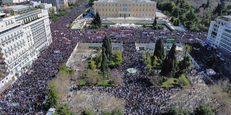 Η συγκέντρωση στο Σύνταγμα για τα τρία χρόνια από το δυστύχημα των Τεμπών