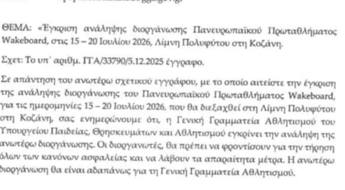 Με βαθιά αγάπη για τον τόπο μας, τη Λίμνη Πολυφύτου, και αφοσίωση στα αθλητικά ιδεώδη, ο Ναυτικός Όμιλος Σερβίων έχει την τεράστια χαρά να ανακοινώσει μια είδηση-ορόσημο: Η επίσημη έγκριση από το Υπουργείο Αθλητισμού είναι γεγονός! Το Πανευρωπαϊκό Πρωτάθλημα Wakeboard θα διεξαχθεί στην περιοχή μας. Αυτή η επιλογή δεν ήταν εύκολη.