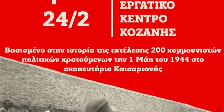 Η Τομεακή Επιτροπή Κοζάνη του ΚΚΕ και το Τομεακό Συμβούλιο Κοζάνη της ΚΝΕ, οργανώνουν προβολή της ταινίας : «Το τελευταίο σημείωμα», την Τρίτη 24/2, στις 19:00, στο Εργατικό Κέντρο Ν. Κοζάνης, με τίτλο: “Στο θάνατο ατρόμητοι με βλέμμα καθαρό, αυτά τα ντοκουμέντα ανήκουν στο λαό!” αφιερωμένη στους 200 κομμουνιστές εκτελεσμένους της Καισαριανής.