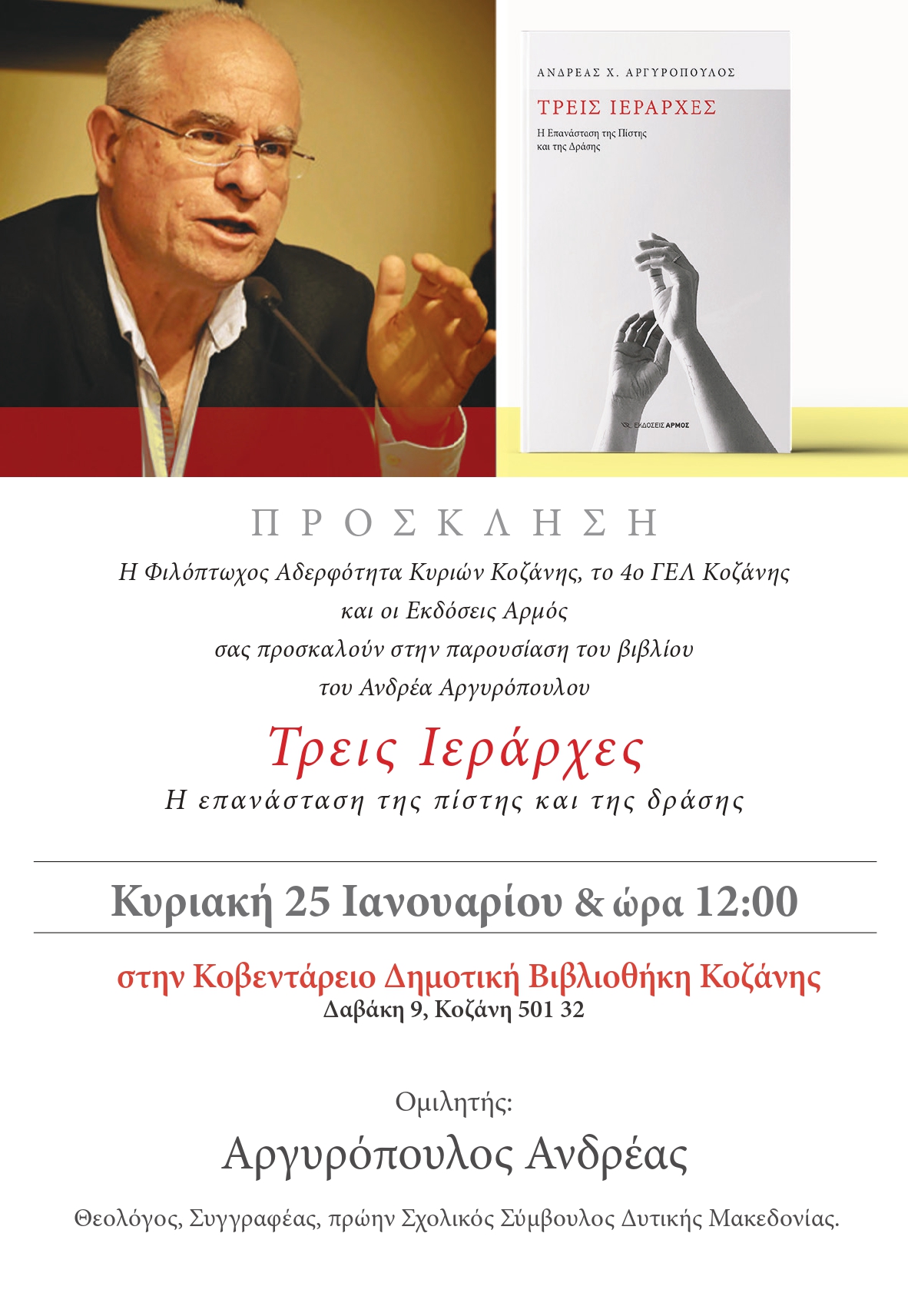 και οι Εκδόσεις “Αρμός” σας προσκαλούν στην παρουσίαση του νέου βιβλίου του Ανδρέα Αργυρόπουλου