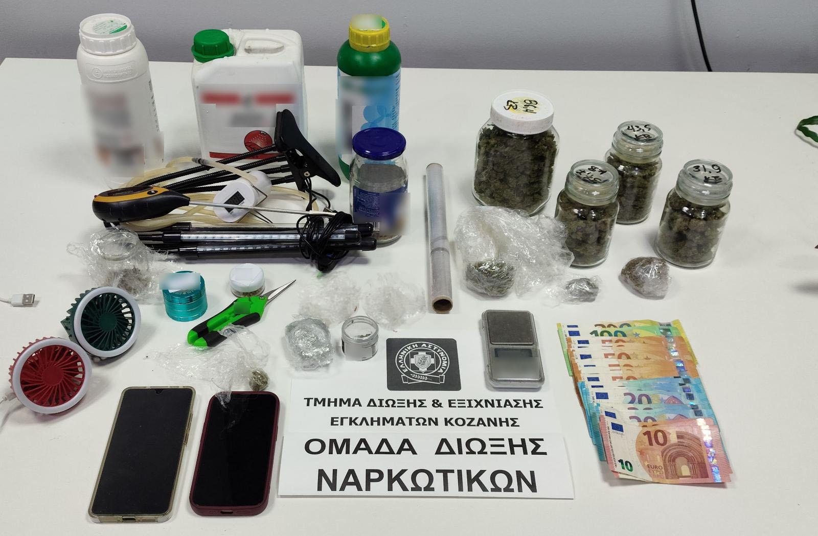 Ακολούθως σε έρευνα που πραγματοποιήθηκε  στην οικία του 24χρονου στην Κοζάνη, στην οποία βρισκόταν και η 22χρονη βρέθηκαν συνολικά και κατασχέθηκαν: