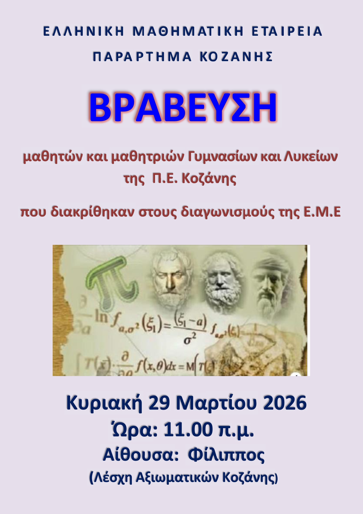 Κοζάνη: Βράβευση μαθητών από την Ελληνική Μαθηματική Εταιρία