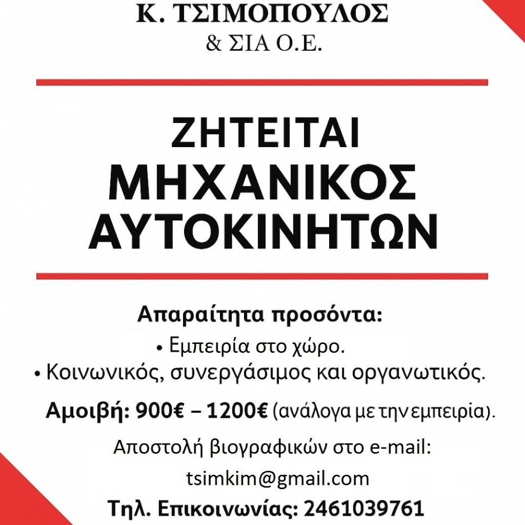 <!-- wp:gallery {"linkTo":"none"} --> <figure class="wp-block-gallery has-nested-images columns-default is-cropped"><!-- wp:image {"id":929854,"sizeSlug":"large","linkDestination":"none"} --> <figure class="wp-block-image size-large"><img src="https://kozanimedia.gr/wp-content/uploads/2025/10/Αγγελία-μηχανικού-1024x1024.jpg" alt="" class="wp-image-929854"/></figure> <!-- /wp:image --></figure> <!-- /wp:gallery -->