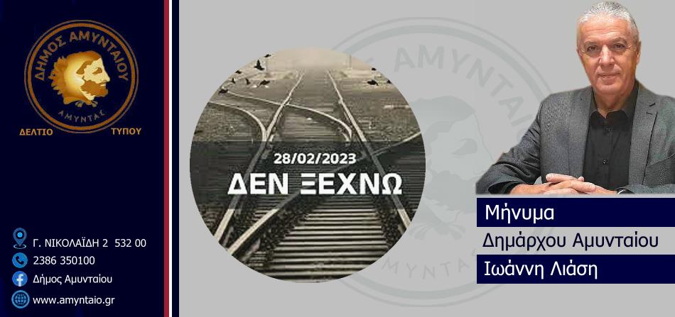 Μήνυμα Δημάρχου Αμυνταίου για τα τρία χρόνια από το δυστύχημα των Τεμπών