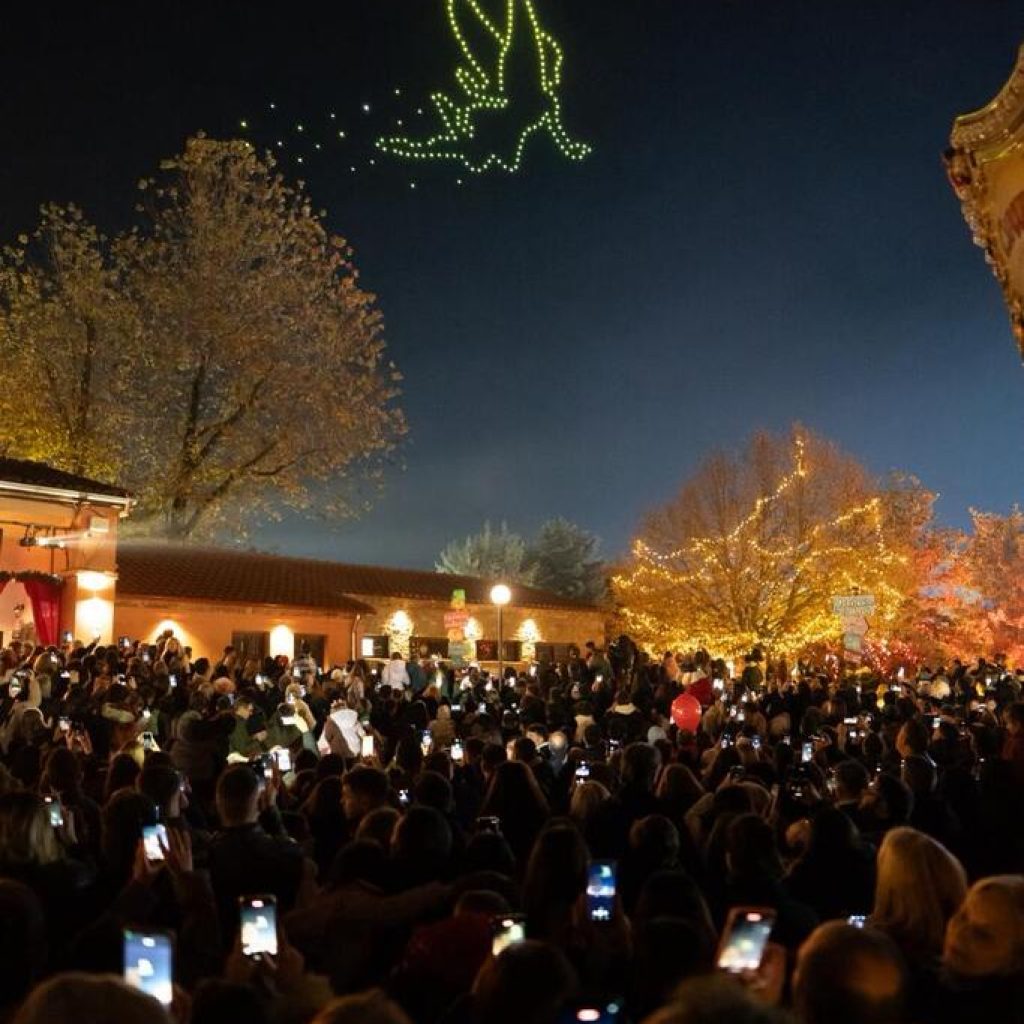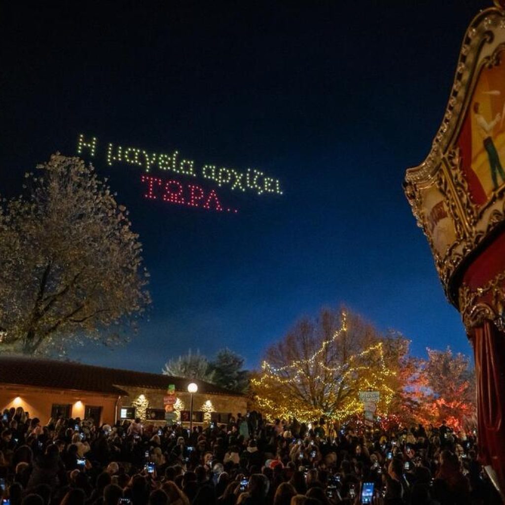 Οταν τα πάνω από 200 drones σχημάτισαν στον τρικαλινό ουρανό τον Πίτερ Παν και τον Αη Βασίλη, οι χιλιάδες παρευρισκόμενοι/ες στην τελετή έναρξης του 14ου Μύλου των Ξωτικών εισήλθαν στη μαγεία των Χριστουγέννων. Μαζί τους, οι δεκάδες χιλιάδες επισκέπτες/τριες που ήδη κατακλύζουν την πρωτεύουσα των Χριστουγέννων, καθώς τα Τρίκαλα προσφέρουν σε κάθε επισκέπτη την αγάπη και το χαμόγελο για την πιο μαγική γιορτή!