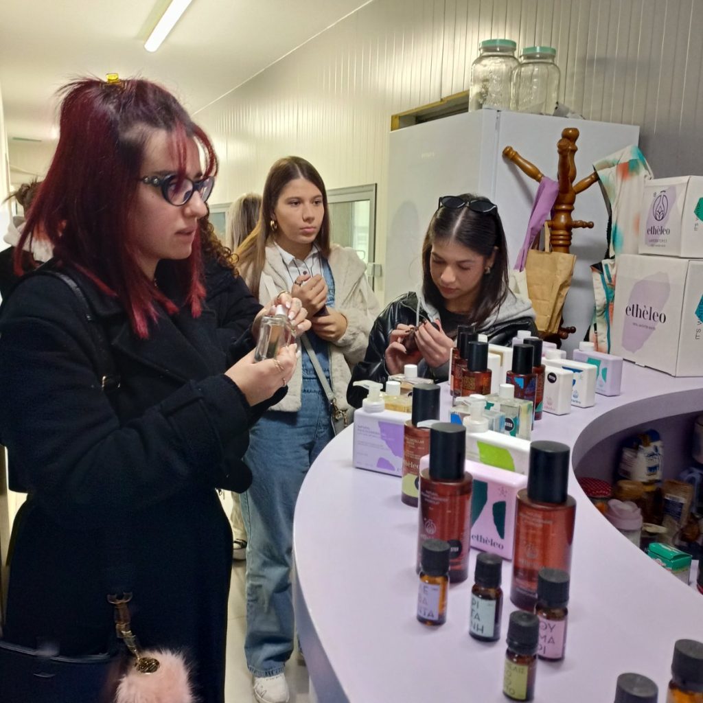 Οι μαθήτριες της Ειδικότητας Βοηθών Φαρμακείου της ΕΠΑ.Σ Δ.ΥΠ.Α ΜΑΘΗΤΕΙΑΣ ΚΟΖΑΝΗΣ με την εκπαιδευτικό κ. Καραλάζου Ελένη, στα πλαίσια εκπαιδευτικής επίσκεψης επισκέφτηκαν την Επιχείρηση ETHELEO στην Αναρράχη Πτολεμαΐδας και ξεναγήθηκαν στους χώρους των εγκαταστάσεων της επιχείρησης. Ενημερώθηκαν για τα αρωματικά φυτά που καλλιεργούνται, τους τρόπους καλλιέργειας, τα οφέλη και τις χρήσεις των εκχυλισμάτων και των αιθέριων ελαίων που παράγονται από αυτά. Επίσης είχαν την ευκαιρία να προμηθευτούν προϊόντα από την πηγή παραγωγής, αφού πρώτα τα δοκίμασαν. Θα θέλαμε να ευχαριστήσουμε την κ. Λαζαρίδου Ερμιόνη, συνιδιοκτήτης της επιχείρησης, για τη θερμή φιλοξενία και την ξενάγηση στους χώρους των εγκαταστάσεων.
