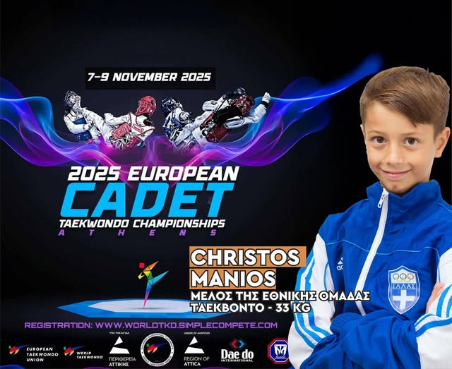 Στην πόλη της Αθήνας θα βρεθεί τις επόμενες ημέρες ο αθλητής και πρωταθλητής του συλλόγου μας Χρήστος Μάνιος του Νικολάου, προκειμένου να εκπροσωπήσει την Ελλάδα ως μέλος της Εθνικής Ομάδας Taekwondo στο Πανευρωπαϊκό Πρωτάθλημα Παίδων – Κορασίδων.
