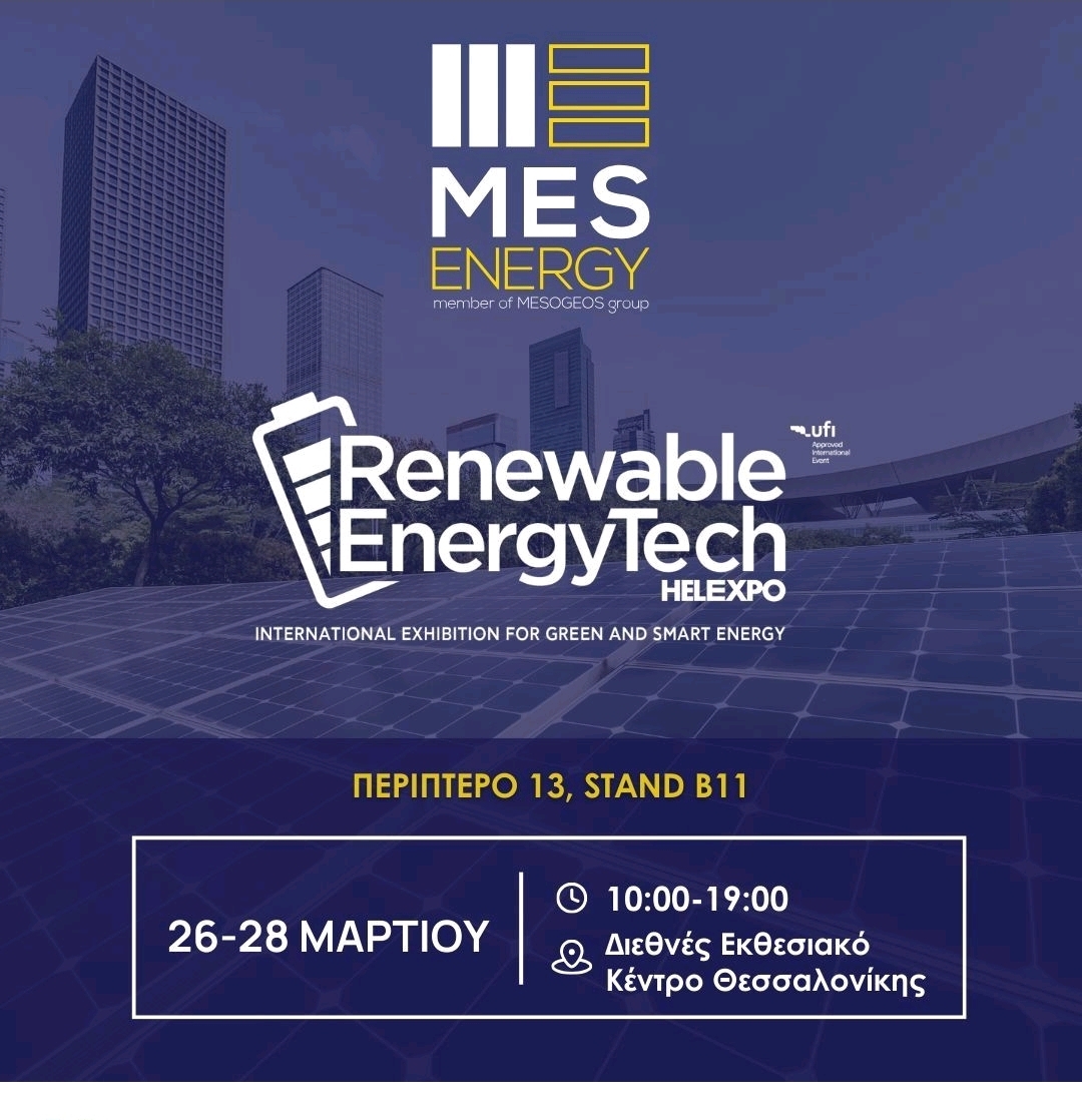 Με ιδιαίτερη χαρά, η εταιρεία MES Energy S.A. ανακοινώνει τη συμμετοχή της στη Renewable EnergyTech Expo, τη Διεθνή Έκθεση Πράσινης και Έξυπνης Ενέργειας, η οποία θα πραγματοποιηθεί από την Πέμπτη 26 Μαρτίου έως και το Σάββατο 28 Μαρτίου 2026, στο Διεθνές Εκθεσιακό Κέντρο Θεσσαλονίκης.