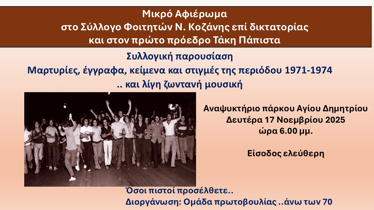 Μικρό Αφιέρωμα στο Σύλλογο Φοιτητών N. Κοζάνης επί δικτατορίας
