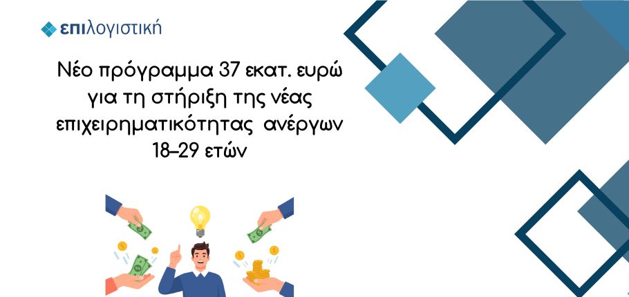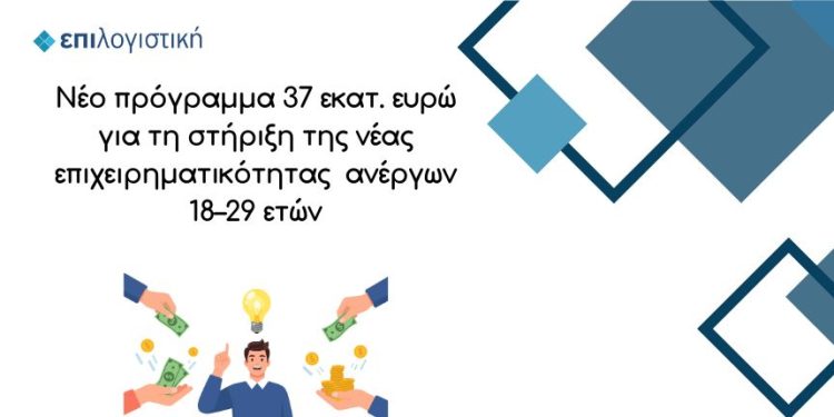 Εντός του Ιανουαρίου 2026 προκηρύσσεται νέο Ολοκληρωμένο Πρόγραμμα ενίσχυσης της νέας επιχειρηματικότητας για ανέργους 18–29 ετών, συνολικού προϋπολογισμού 37 εκατ. ευρώ. Το πρόγραμμα απευθύνεται σε νέους που βρίσκονται εκτός απασχόλησης, εκπαίδευσης και κατάρτισης, με έμφαση στις γυναίκες και σε δραστηριότητες της ψηφιακής και πράσινης οικονομίας.