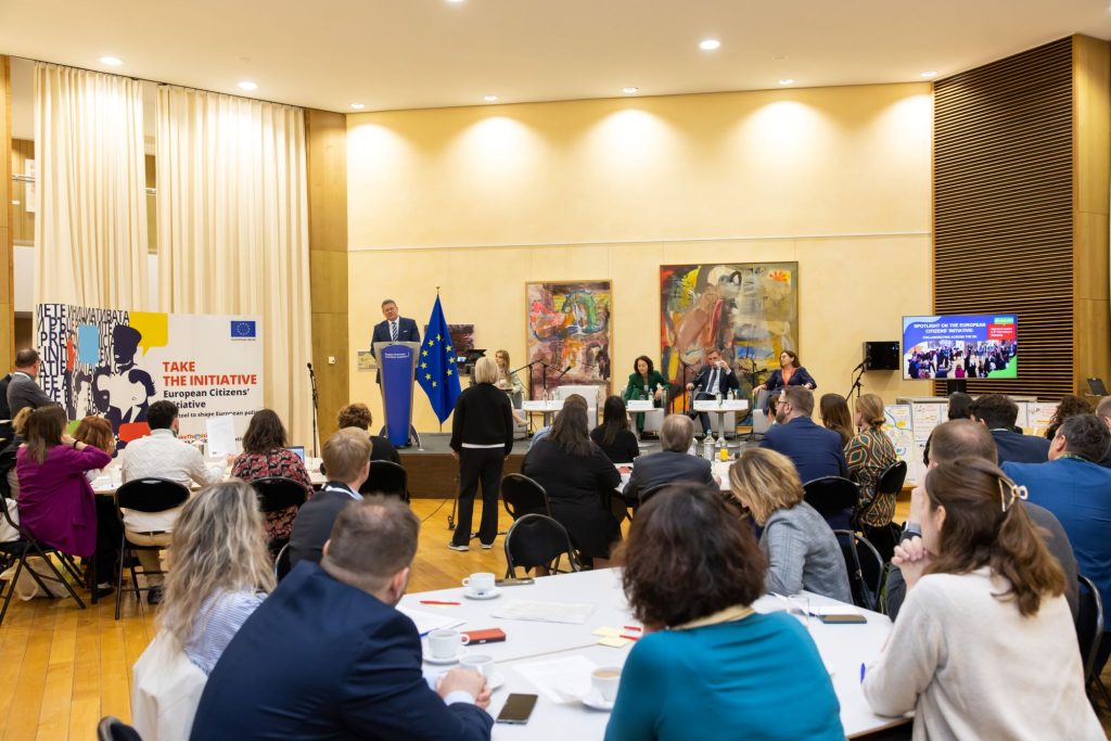 Την εκδήλωση άνοιξε ο Maroš ŠEFČOVIČ, Ευρωπαίος Επίτροπος Εμπορίου και Οικονομικής Ασφάλειας, Εκτελεστικός Αντιπρόεδρος για την Ευρωπαϊκή Πράσινη Συμφωνία, τις Διοργανικές Σχέσεις και τη Διερεύνηση Προοπτικών, αρμόδιος για την Ευρωπαϊκή Πρωτοβουλία Πολιτών (ΕΠΠ). Κατά τη διάρκεια της εισήγησής του, ο Επίτροπος επικεντρώθηκε στο πώς να φέρουμε τους πολίτες κοντά στη λήψη αποφάσεων και στη χάραξη πολιτικής αλλά και πώς να ενσωματώσουμε την εμπλοκή των πολιτών στην ΕΕ. Αυτό αποτέλεσε το έναυσμα για μια πλούσια συζήτηση για την ενίσχυση της συνεργασίας και της συμμετοχικής δημοκρατίας στην πολιτική της ΕΕ, για να αποτραπεί η αποκοπή των θεσμικών οργάνων της ΕΕ από την καθημερινή ζωή των Ευρωπαίων, καθώς η ΕΠΠ αποτελεί ένα ισχυρό εργαλείο – αλλά μόνο εάν χρησιμοποιείται σωστά και γίνει ευρέως γνωστό.