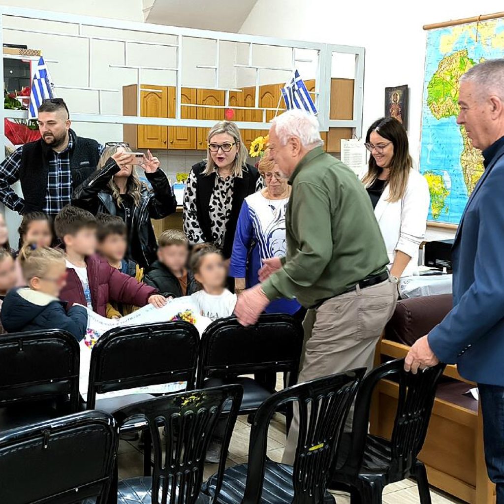 Μια όμορφη και συγκινητική συνάντηση πραγματοποιήθηκε το πρωί της Παρασκευής 24 Οκτωβρίου 2025, όταν οι μικροί μαθητές του Β’ Νηπιαγωγείου Αμυνταίου επισκέφθηκαν το Κ.Α.Π.Η. Αμυνταίου, με αφορμή τον εορτασμό της Εθνικής Επετείου της 28ης Οκτωβρίου.