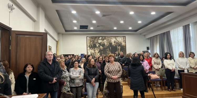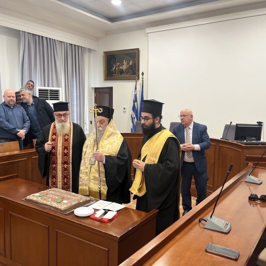 Σε μια λιτή αλλά ουσιαστική συνάντηση, με κύριο χαρακτηριστικό το πνεύμα συνεργασίας και αμοιβαίου σεβασμού, πραγματοποιήθηκε η κοπή της Πρωτοχρονιάτικης Πίτας των εργαζομένων του Δήμου Γρεβενών. Η τελετή έλαβε χώρα στην αίθουσα συνεδριάσεων του Δημοτικού Συμβουλίου, παρουσία των δημοτικών υπαλλήλων, των αιρετών και του Σεβασμιώτατου Μητροπολίτη Γρεβενών κ.κ. Δαβίδ, ο οποίος και ευλόγησε την εκδήλωση.