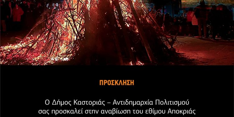 Ο Δήμος Καστοριάς – Αντιδημαρχία Πολιτισμού σας προσκαλεί στην αναβίωση του εθίμου Αποκριάς «Μπουμπούνα – Χάσκαρι» στην πλατεία «Ομόνοια» την Κυριακή της Αποκριάς 22 Φεβρουαρίου 2026 και ώρα 20:30.