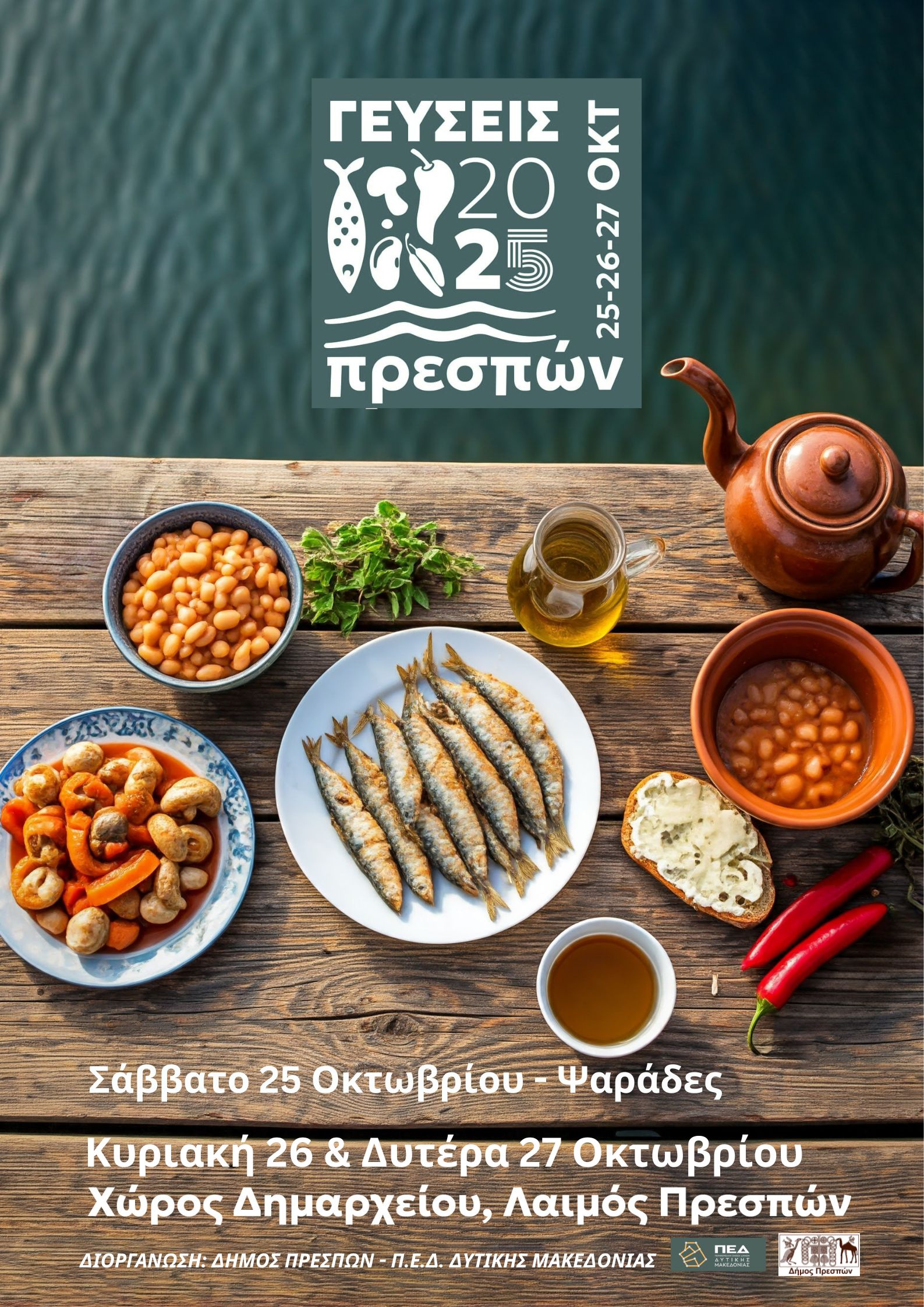 Ο Δήμος Πρεσπών, σε συνεργασία με την ΠΕΔ Δυτικής Μακεδονίας, διοργανώνουν τις «Γεύσεις Πρεσπών» στις 25, 26 και 27 Οκτωβρίου 2025. Πρόκειται για μια γιορτή που έχει στόχο να αναδείξει την παράδοση και την γαστρονομία και να κάνει γνωστά τα προϊόντα της περιοχής.