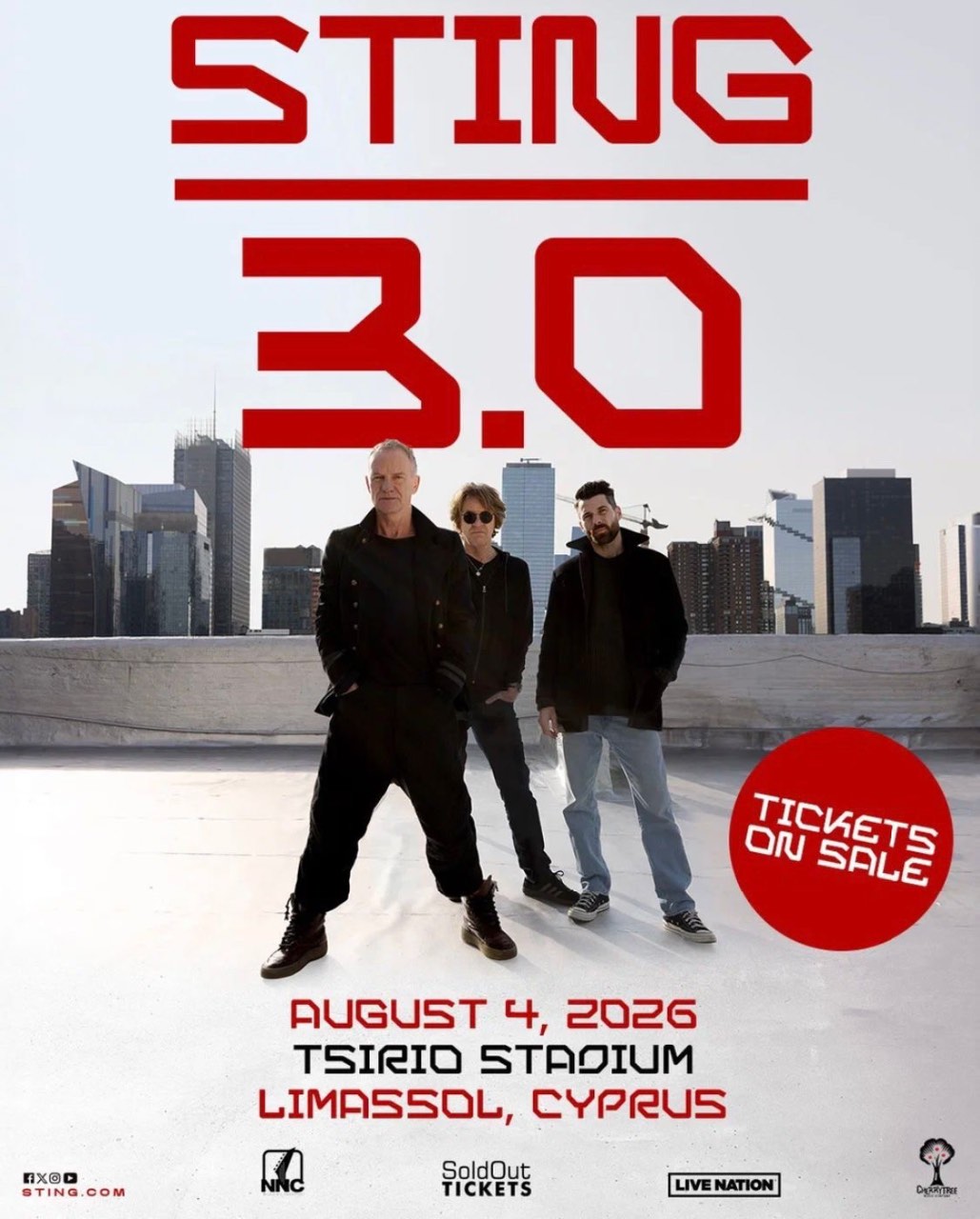 Ο θρυλικός Sting, κάτοχος 17 βραβείων Grammy, έρχεται στην Κύπρο για μία και μοναδική εμφάνιση, την Τρίτη 4 Αυγούστου 2026, στο Τσίρειο Στάδιο στη Λεμεσό, στο πλαίσιο της παγκόσμιας περιοδείας “STING 3.0 World Tour”.