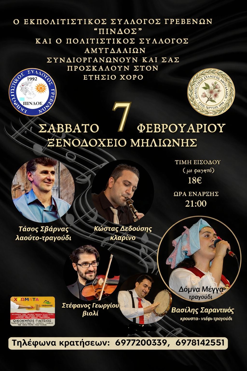 Με αίσθημα ευθύνης απέναντι στην κληρονομιά που μας παραδόθηκε, ο Πολιτιστικός Σύλλογος Αμυγδαλιών και ο Εκπολιτιστικός Σύλλογος Γρεβενών «ΠΙΝΔΟΣ» ενώνουν τις δυνάμεις τους σε ένα αντάμωμα ψυχής.