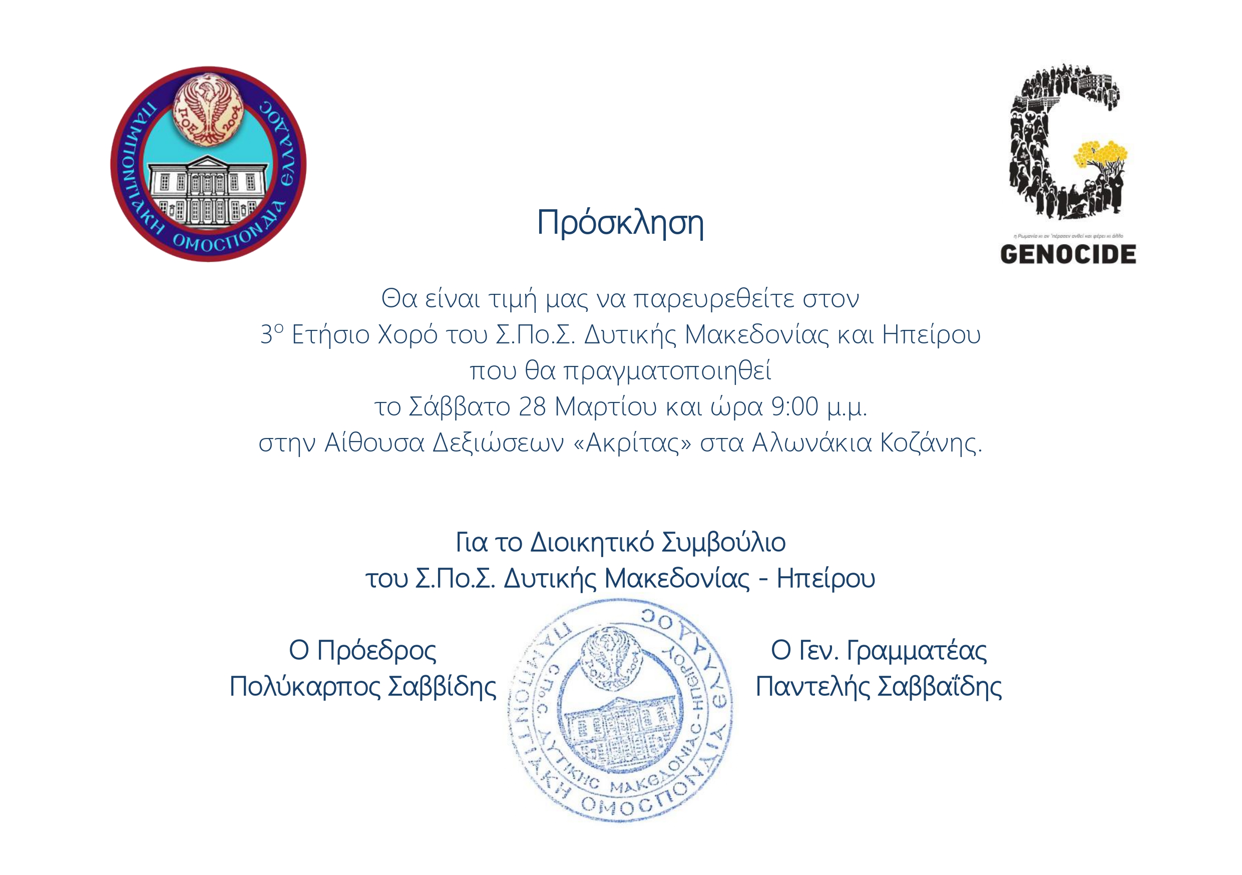Πρόσκληση για τον 3ο ετήσιο χορό του Σ.Πο.Σ. Δυτικής Μακεδονίας και Ηπείρου.