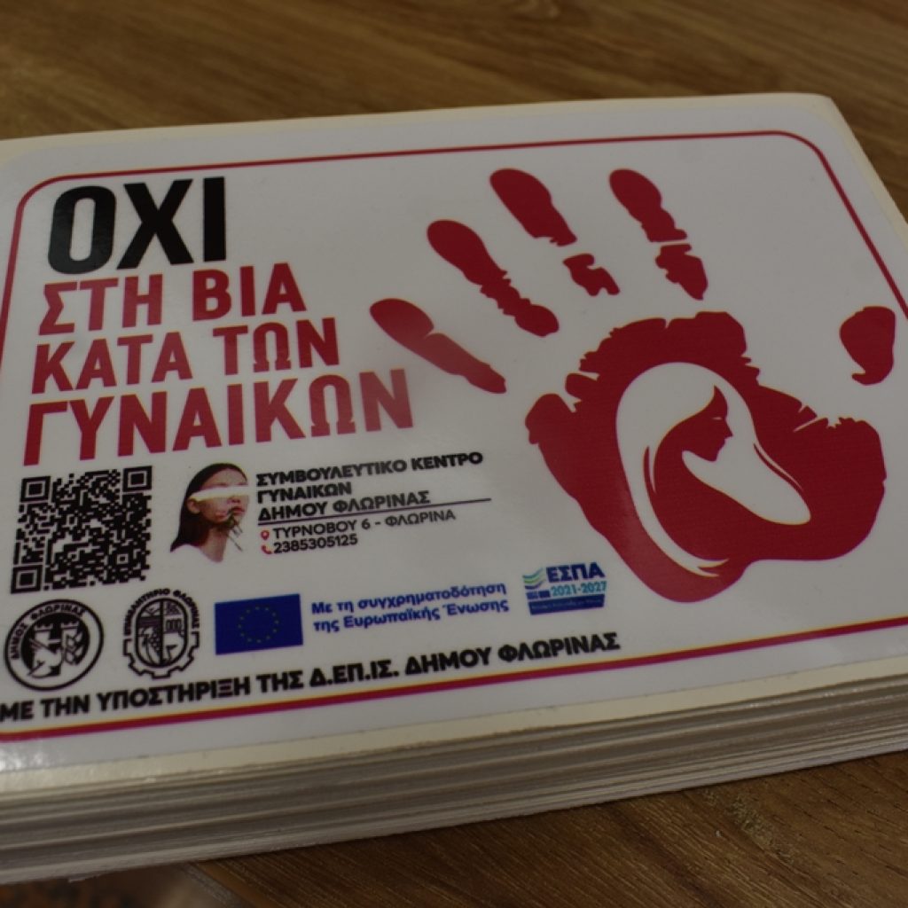 Όπως ανακοινώθηκε σε συνέντευξη Τύπου, στα καταστήματα της Φλώρινας θα τοποθετηθεί ένα ειδικό αυτοκόλλητο, με τη συνδρομή του 3ου Γενικού Λυκείου Φλώρινας, με στόχο την ενημέρωση των γυναικών για την ύπαρξη των κατάλληλων δομών, αλλά και την ευαισθητοποίηση όλων για το σημαντικό ζήτημα της βίας κατά των γυναικών.