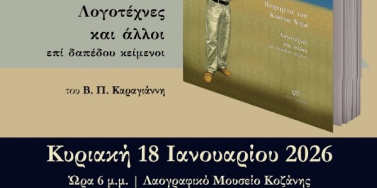 Παρουσίαση του βιβλίου «Πορτρέτα του Κώστα Ντιό» (Λογοτέχνες και άλλοι επί δαπέδου κείμενοι) του Β. Π. Καραγιάννη, που κυκλοφορεί από τις Εκδόσεις Παρέμβαση, θα πραγματοποιηθεί την Κυριακή 18 Δεκεμβρίου, στις 6 μ.μ., στο Λαογραφικό Μουσείο Κοζάνης.