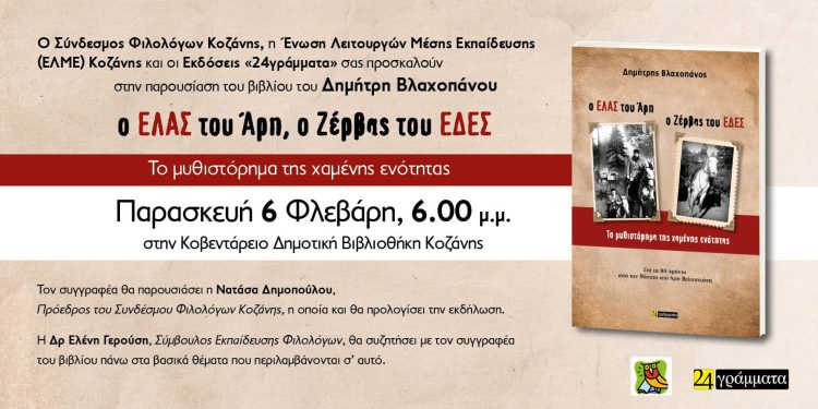 Παρουσίαση του βιβλίου του Δημήτρη Βλαχοπάνου: “Ο ΕΛΑΣ του Άρη, ο Ζέρβας του ΕΔΕΣ, το μυθιστόρημα της χαμένης ενότητας”, που συνδιοργανώνουμε με την ΕΛΜΕ Κοζάνης και θα πραγματοποιηθεί την Παρασκευή 6 Φεβρουαρίου 2026 στις 6.00μ.μ. στην Κοβεντάρειο Δημοτική Βιβλιοθήκη Κοζάνης.