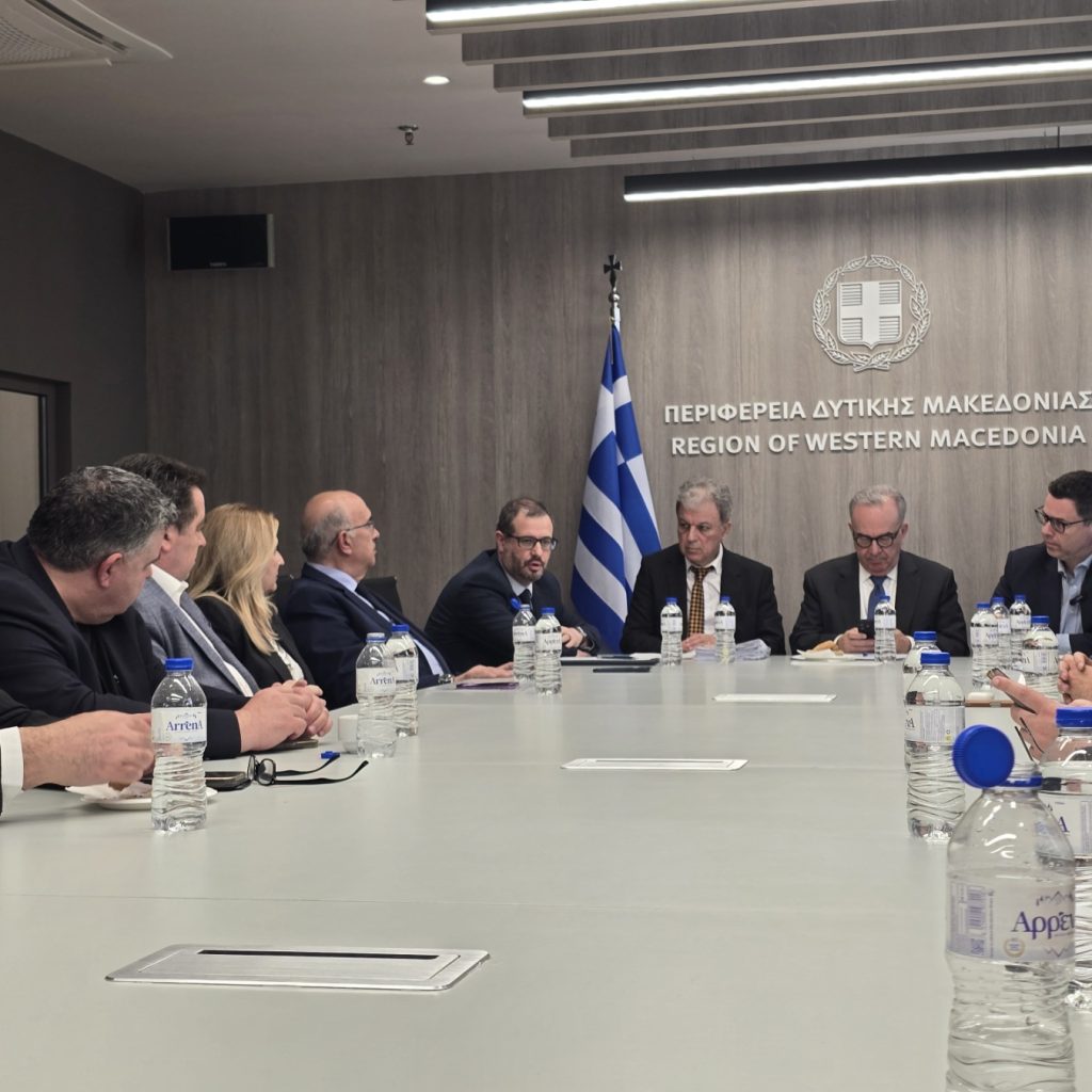 Κυβερνητικό κλιμάκιο αποτελούμενο από τον Αναπληρωτή Υπουργό Εθνικής Οικονομίας & Οικονομικών Νίκο Παπαθανάση, τον Υφυπουργό στον Πρωθυπουργό Θανάση Κοντογεώργη, τον Υφυπουργό Περιβάλλοντος & Ενέργειας Νίκο Τσάφο και τον Γενικό Γραμματέα Εργασιακών Σχέσεων του Υπουργείου Εργασίας & Κοινωνικής Ασφάλισης Nίκο Μηλαπίδη και τον Διοικητή της Ειδικής Υπηρεσίας Δίκαιης Αναπτυξιακής Μετάβασης Πελοπίδα Καλλίρη, υποδέχθηκε σήμερα Τετάρτη 4 Μαρτίου 2026  ο Περιφερειάρχης Δυτικής Μακεδονίας Γιώργος Αμανατίδης στο κτίριο της Περιφέρειας Δυτικής Μακεδονίας στη ΖΕΠ, στο πλαίσιο ενημέρωσης για την πορεία των έργων και προγραμμάτων της Δίκαιης Αναπτυξιακής Μετάβασης (ΔΑΜ).