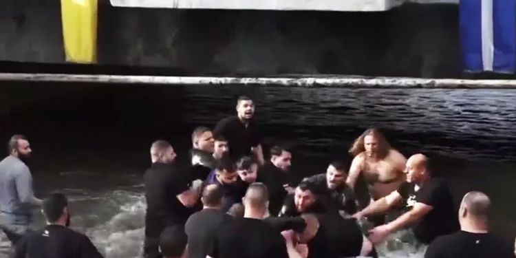 Όπως δείχνουν και βίντεο από τοπικά μέσα ενημέρωσης, αφού ο Μητροπολίτης Φλωρίνης, Πρεσπών και Εορδαίας κ.κ. Ειρηναίος έριξε τον Σταυρό στο ποτάμι, οι πιστοί δεν μπορούσαν να… συμφωνήσουν ποιος έπιασε τον Σταυρό και επί αρκετά δευτερόλεπτα σπρώχνονταν και φώναζαν μεταξύ τους