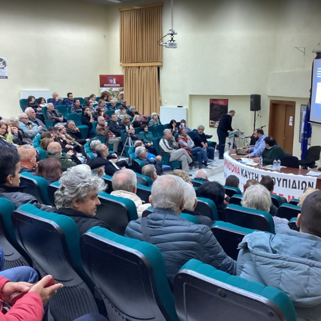 Η Αίθουσα του Εμπορικού Επιμελητηρίου Πτολεμαΐδας γέμισε με κόσμο που ήρθε για να ενημερωθεί για τις επιπτώσεις της καύσης στην υγεία του λαού, στο εισόδημά του, στο περιβάλλον.