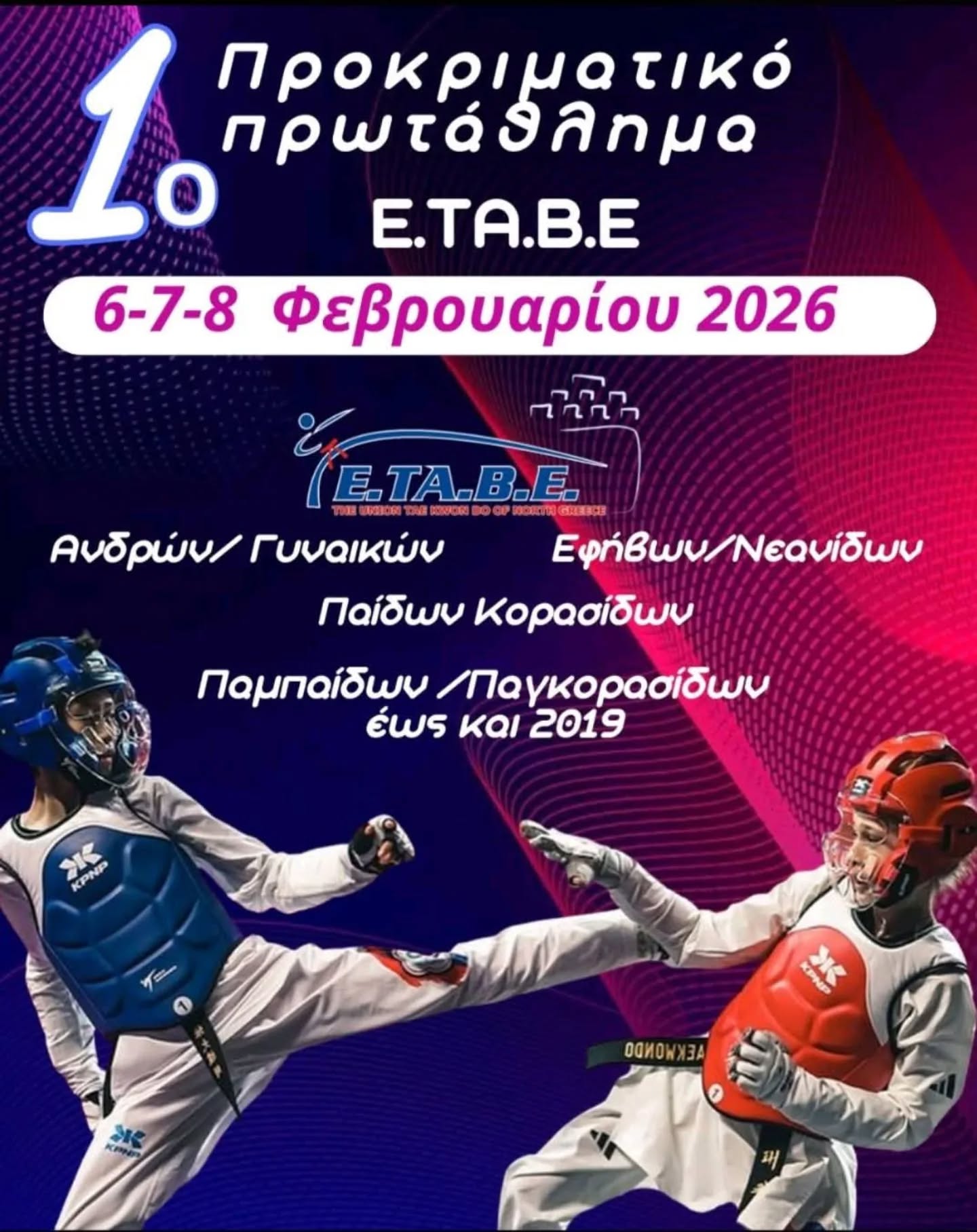 Με δυναμική παρουσία 24 αθλητών και αθλητριών, ο σύλλογος Μακεδονική Δύναμη Κοζάνης θα λάβει μέρος στο 1ο Προκριματικό Πρωτάθλημα της Ένωσης Ταεκβοντό Βορείου Ελλάδος (ΕΤΑΒΕ) για το 2026 , το οποίο θα διεξαχθεί στον Εύοσμο Θεσσαλονίκης, από τις 6 έως τις 8 Φεβρουαρίου 2026.