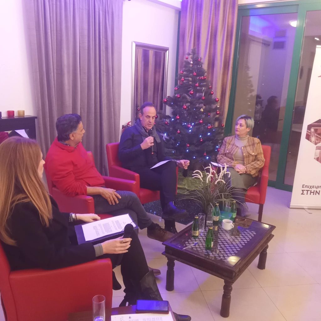 Τη συζήτηση συντόνισε η κα Δήμητρα Καραγιάννη, Εκδότρια και Υπεύθυνη του πολιτιστικού φορέα «Παρέμβαση». Ακολούθησε ανοιχτή συζήτηση με το κοινό, δίνοντας τη δυνατότητα στους συμμετέχοντες να ανταλλάξουν απόψεις και ιδέες.