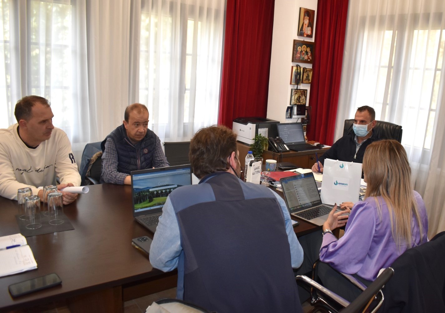 Συνάντηση πραγματοποίησε ο Δήμαρχος Καστοριάς, Γιάννης Κορεντσίδης, με εκπροσώπους της Ελληνικής Εταιρείας Διανομής Αερίων Enaon EDA, και συγκεκριμένα με τον Επικεφαλής του Τομέα Construction PW WMA, Δημήτρη Ήργη, και την Επικεφαλής του Τομέα Greek Institutional Affairs, Μαρία Καραγιάννη. Παρόντες ήταν επίσης οι Αντιδήμαρχοι Τεχνικών Υπηρεσιών και Προγραμματισμού, Κωνσταντίνος Τσανούσας και Οικονομικών και Διοικητικών Υπηρεσιών, Σάκης Ρήμος.